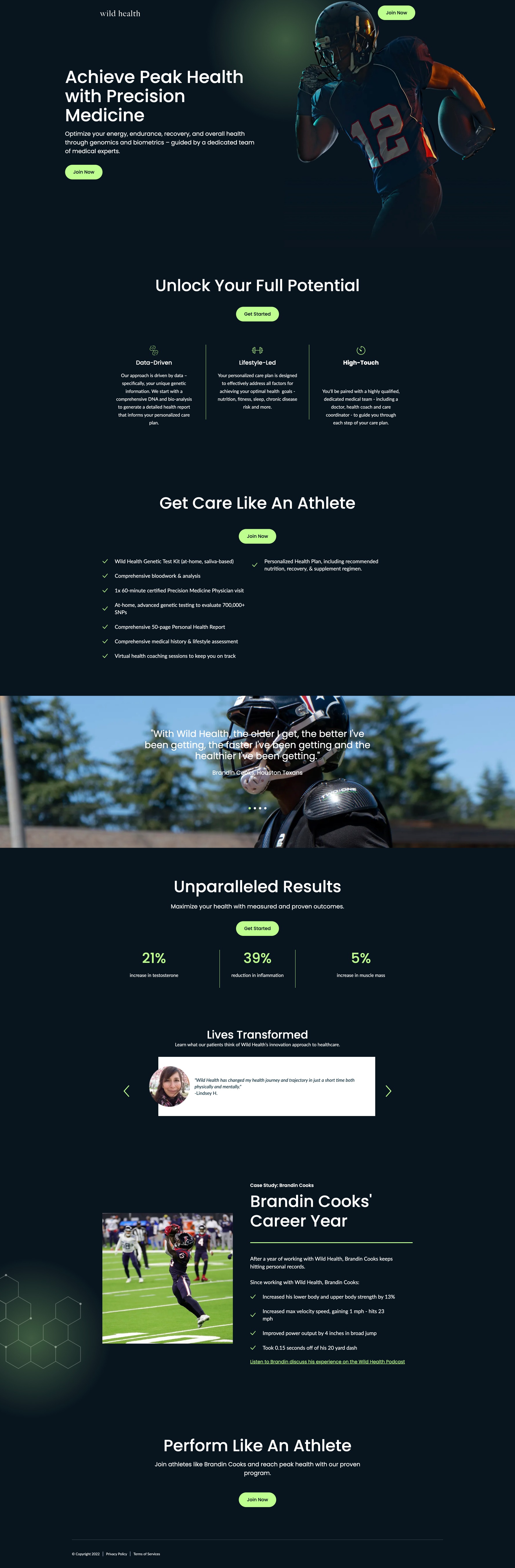 The brand design, creative direction, and media production for a precision health company’s strategic partnership with NFL star Brandin Cooks.